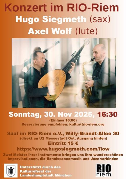 mit Hugo Siegmeth (sax) und Axel Wolf (lute) Die beiden „musikalischen Brüder im Geiste“ Axel Wolf und Hugo Siegmeth sind in völlig verschiedenen musikalischen Disziplinen verwurzelt. Der Virtuose auf Laute und Theorbe Axel Wolf ist spezialisiert auf die Epoche der Renaissance und des Barock. Hugo Siegmeth am Saxofon ist als Komponist ein Fachmann für Modern Jazz und zeitgenössische Musik. Im…
